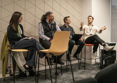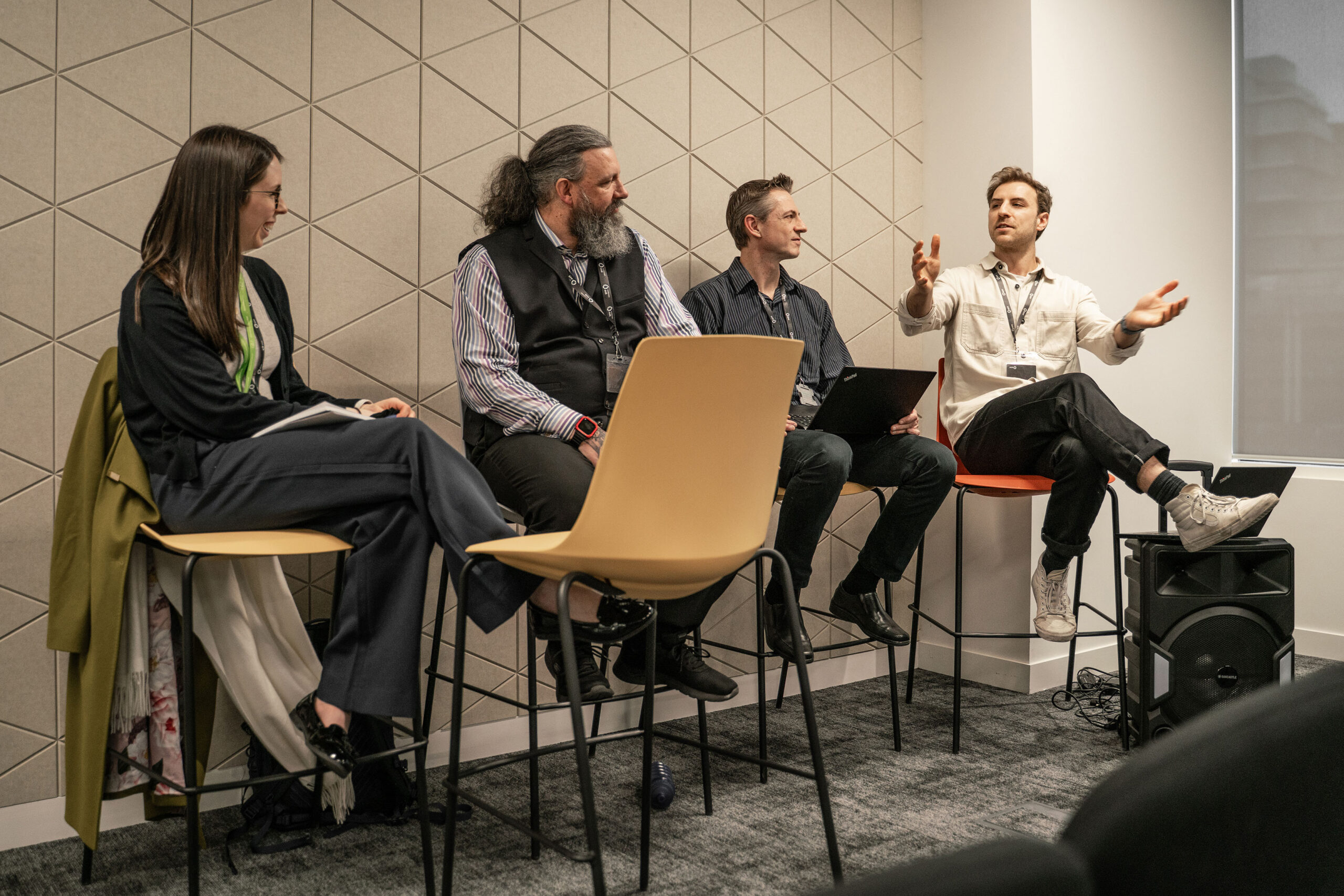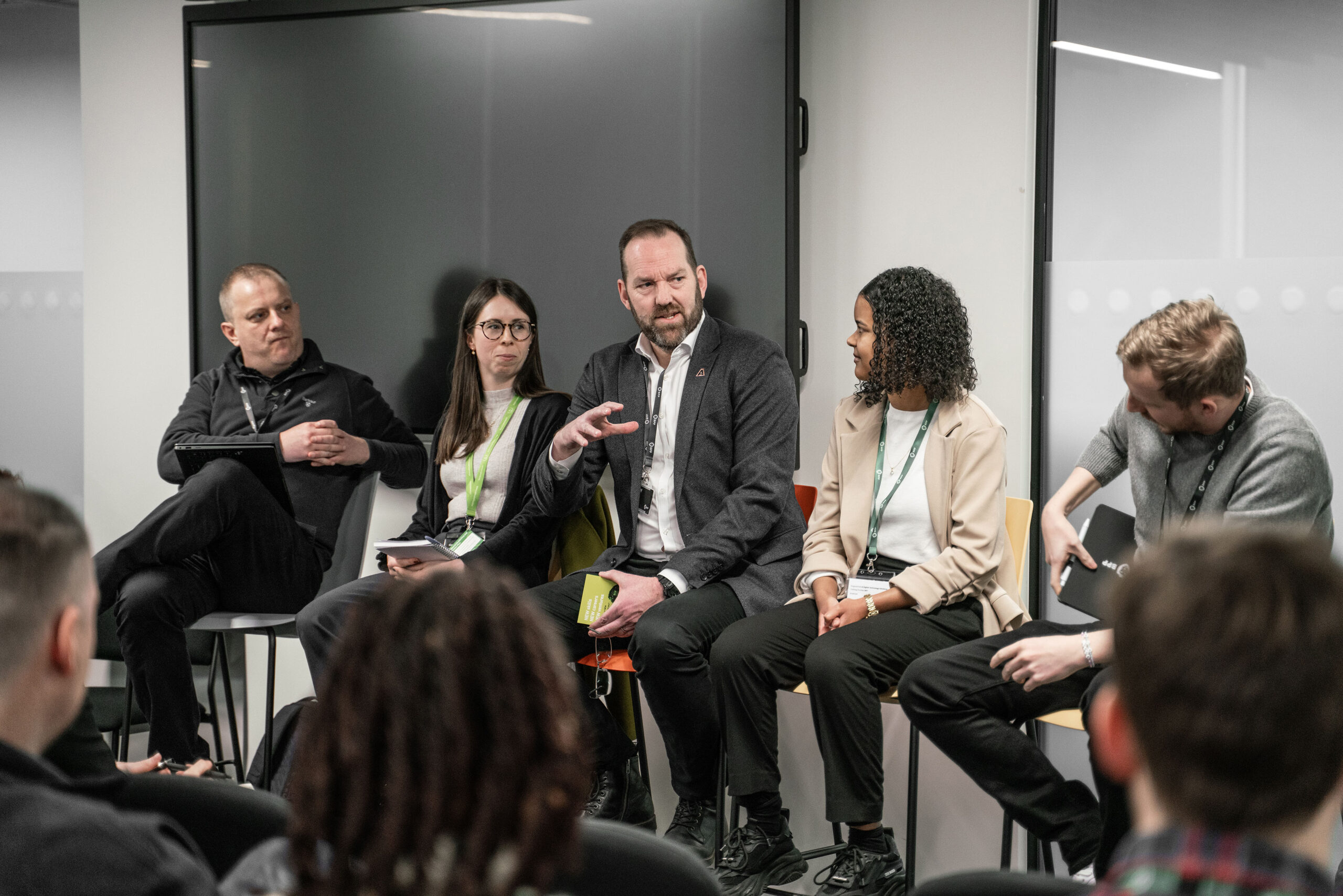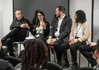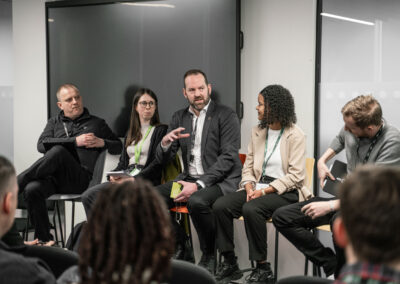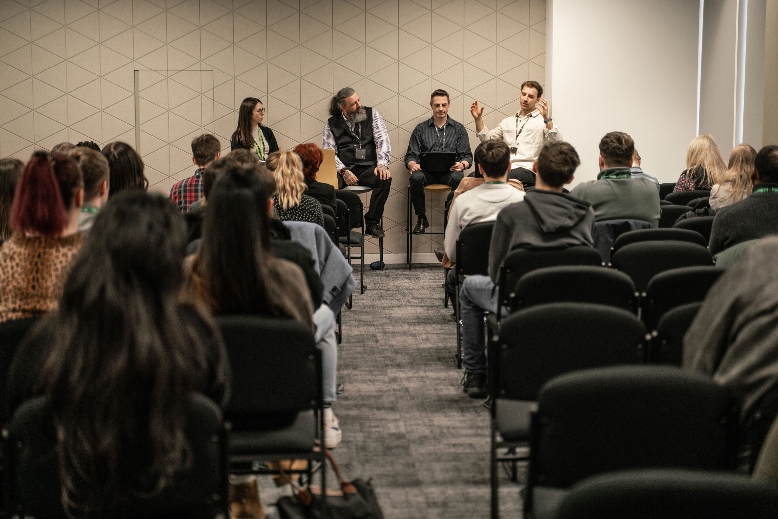 The day kicked off with a panel on “Can AI Be Truly Creative?”. Developed by Sean Rafter and Jacob Reilly Cooper, our Heads of Curriculum for Data/AI and Software respectively, the panel featured industry voices such as Tony Pitchford from the BCS and Shalom Galagher, a current learner on our L6 Digital Technology Solutions Degree and Gemma McKay (Award Lead L7 Data). The discussion tackled fundamental questions about the nature of creativity, the limitations of current AI models, and the ethical considerations surrounding AI’s role in creative processes. The panel concluded with forward-looking insights on the future of AI creativity, including the potential for AI collaboration and the development of embodied AI.