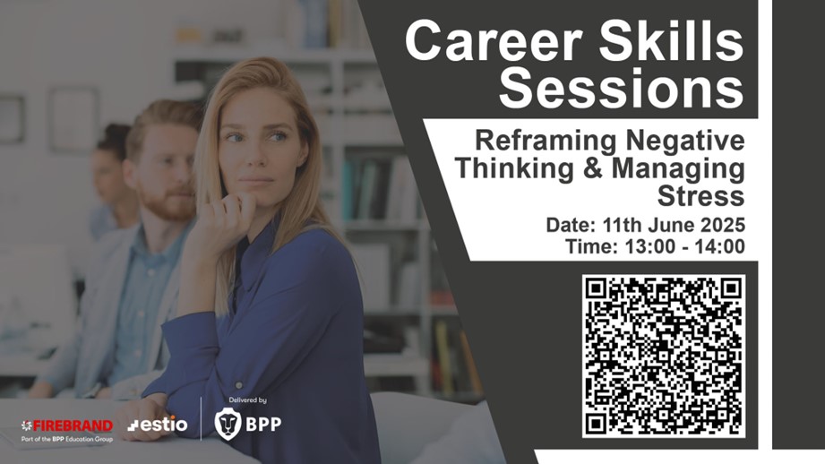 BPP’s Career Skills Sessions are a great way to gain an insight into various career paths and also develop some transferable skill sets. The following upcoming events are available for booking onto for May and June. Please just swipe/click through the flyers below and scan the QR code to book online.