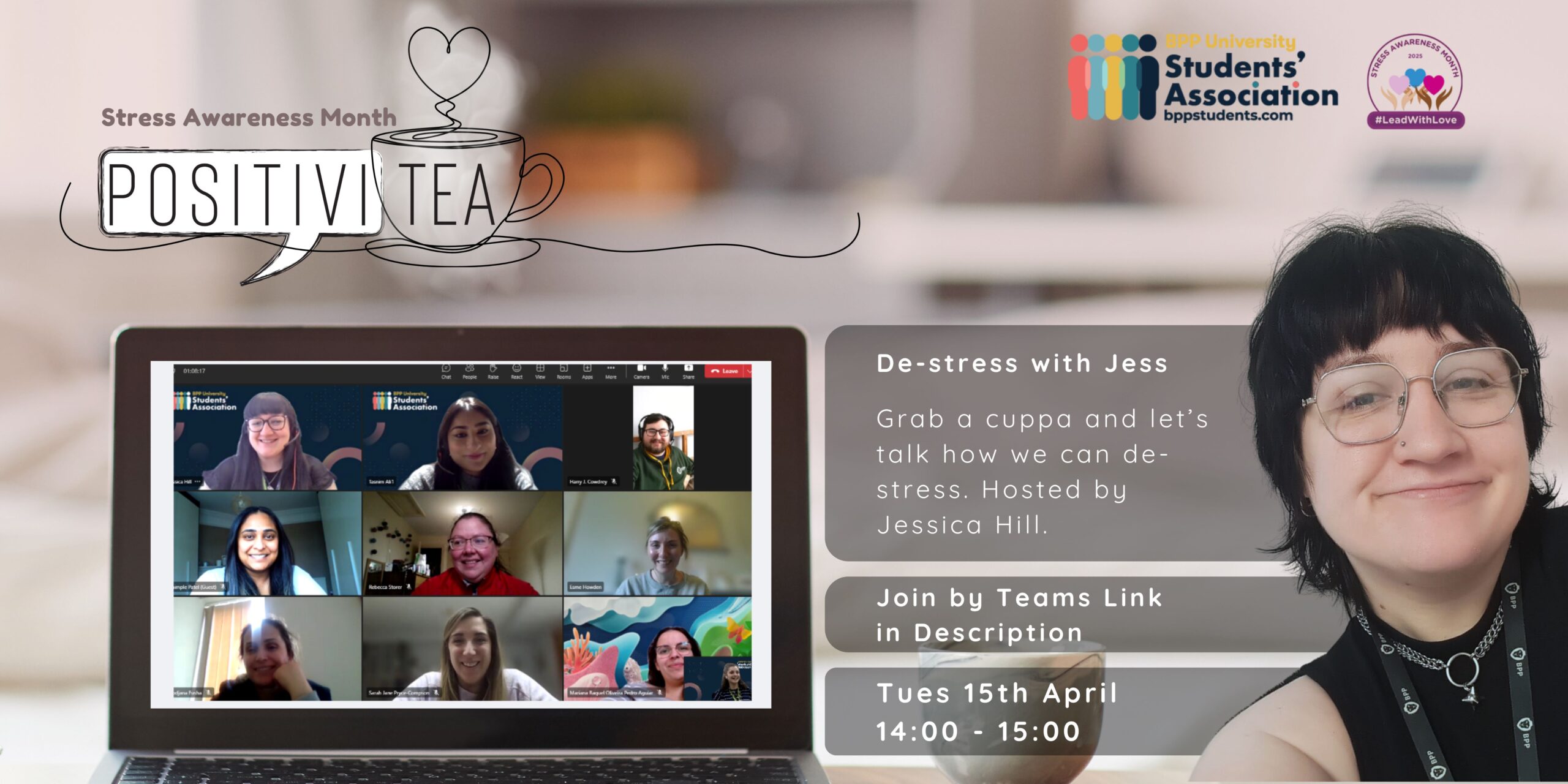 Positivitea is a relaxing online session via Teams on Tuesday, 15th April from 2 pm to 3 pm. It’s part of a monthly series aimed at supporting wellbeing. This month’s theme is stress in recognition of Stress Awareness Month. Jessica Hill from the Independent Ed and Welfare Advice Team will lead stress-relief exercises to help you manage stress.